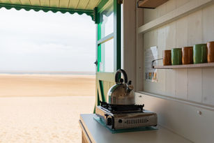 From beach road car park if parked closer to entrance to pinewoods which is where we would recommend for this beach hut: