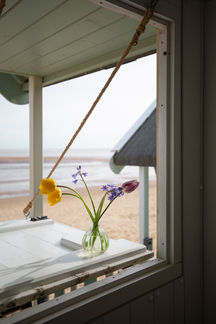 From beach road car park if parked closer to entrance to pinewoods which is where we would recommend for this beach hut: