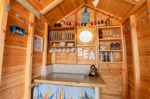 From here you can access the beach, at the bottom of the ramp turn left and walk up approximately 40 huts to Salty Dog. Or At the top of the ramp you can turn left further into the pinewoods, walk down here until there is an opening which leads to the last hut on the beach. Salty dog is approx 20 huts down on the right.