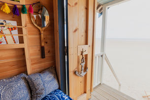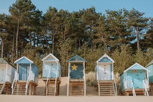 From beach road car park if parked closer to entrance to pinewoods which is where we would recommend for this beach hut: