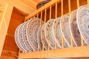 6 of each: mugs, plates, bowls, water tumblers and wine glasses